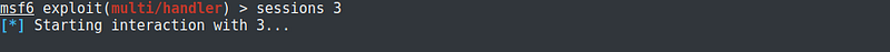 From the shell session, I placed the session on background and started a multi/handler. Configuration settings should be the same as that of the payload generated using msfvenom. I then run the handler on the background.