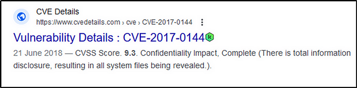 What is the CVSS v2 score of the MS17–010 vulnerability?
