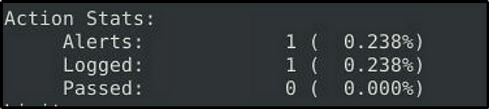 Let Snort investigate the file with the rule created.sudo snort -A full -r ftp-png-gif.pcap -c local.rules -l .