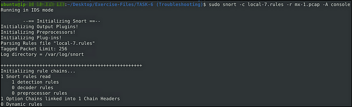 sudo snort -c local-X.rules -r mx-1.pcap -A console