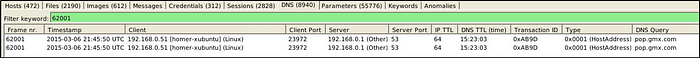 Let’s go to “DNS” menu and we will filter the DNS query by using the frame number as the keyword.