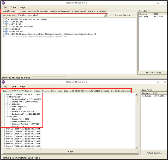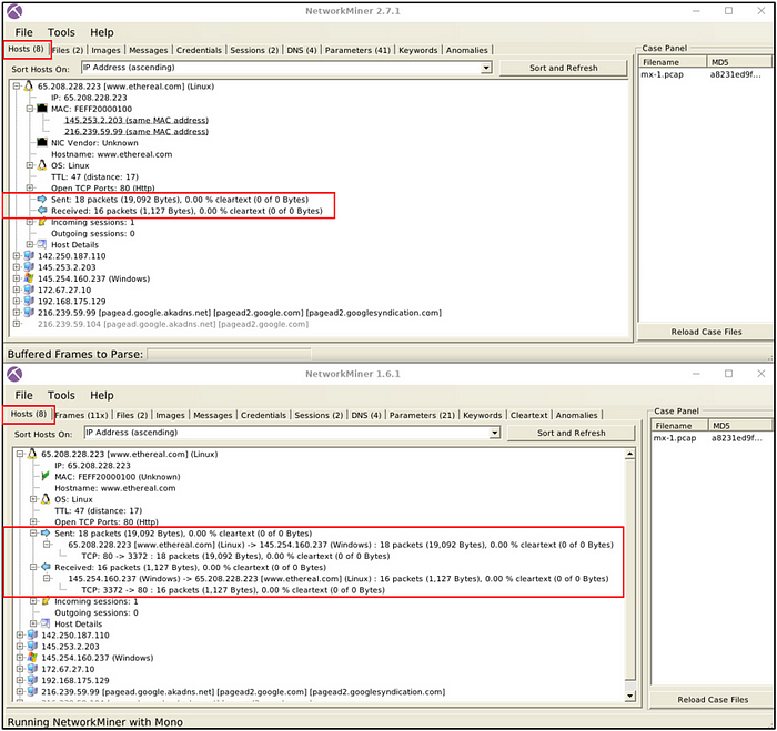 This would remove “case1.pcap” file and will reload “case2.pcap” file as seen in the image below.