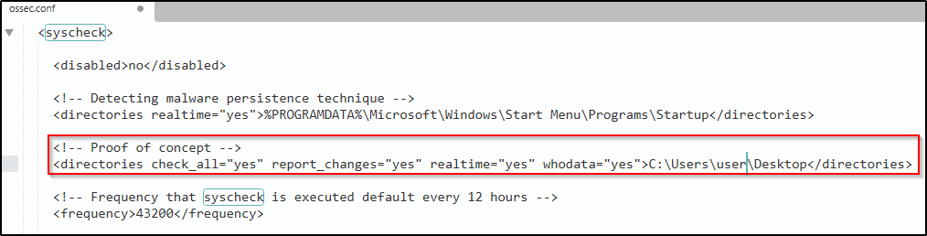 <directories check_all="yes" report_changes="yes" realtime="yes" whodata="yes">C:\Users\<USER_NAME>\Desktop</directories>