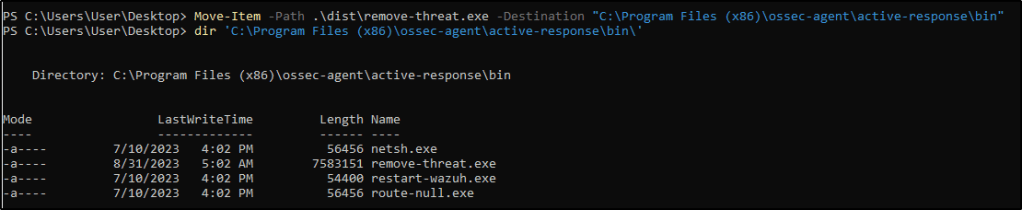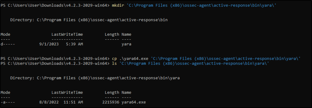 cp .\v4.2.3-2029-win64\yara64.exe 'C:\Program Files (x86)\ossec-agent\active-response\bin\yara\'