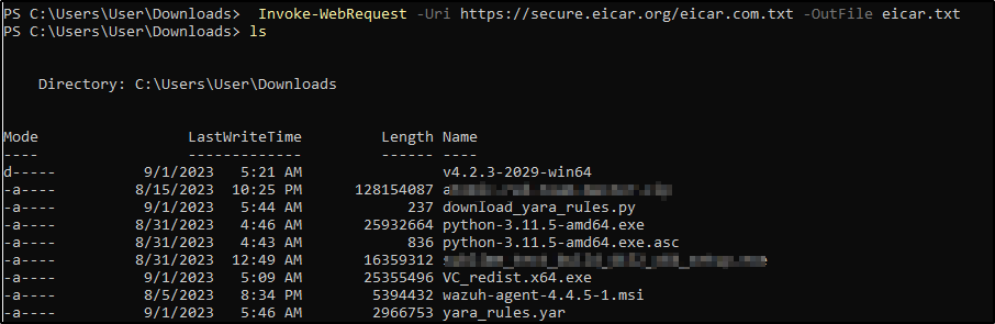 Invoke-WebRequest -Uri https://secure.eicar.org/eicar_com.zip -OutFile eicar.zip