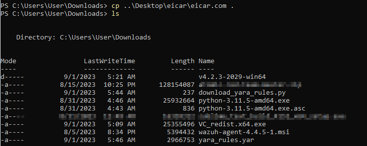 cp .\eicar\eicar.com C:\Users\<USER_NAME>\Downloads