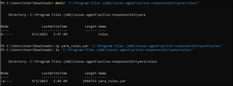 cp yara_rules.yar 'C:\Program Files (x86)\ossec-agent\active-response\bin\yara\rules\'