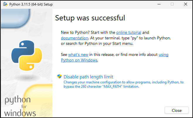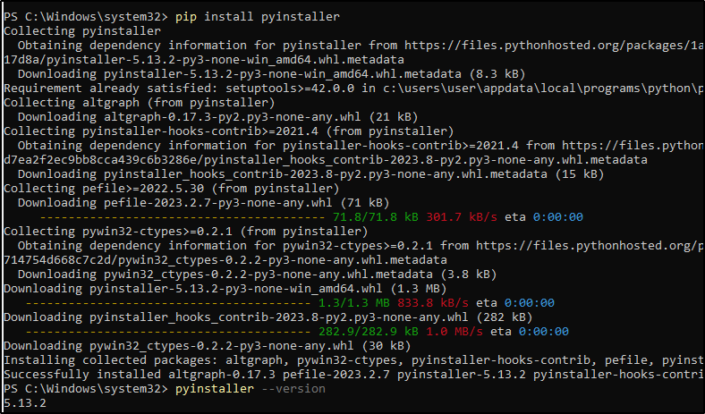 5. After Python finishes the installation, open an administrator PowerShell terminal and proceed with installing PyInstaller using pip.