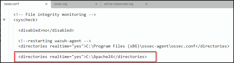 /var/ossec/etc/ossec.conffor Linux endpoints.C:\Program Files (x86)\ossec-agent\ossec.conffor Windows endpoints./Library/Ossec/ossec.conffor macOS endpoints.